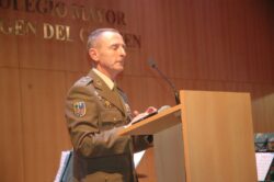 Antes de comenzar el evento, Antonio González, tras dar la bienvenida a las autoridades y asistentes, agradeció al CMU Virgen del Carmen la acogida y facilidades dadas para poderlo llevar a cabo, dirigiendo unas palabras a los asistentes a los que explicó qué es Cáritas Castrense, la labor que desarrolla en tierras aragonesas y les animó a colaborar con Cáritas Castrense, recalcando que “no hay ayuda pequeña, toda es bienvenida”, recordando a los asistentes que “no hay mayor pobreza que la soledad no deseada”. Igualmente agradeció a la Brigada Aragón 1 su disponibilidad permanente a colaborar, destacando la donación de los beneficios de la Carrera del Ebro, y a la Guardia Civil por su donación realizada con motivo de los actos de celebración de su patrona. Posteriormente, el recientemente nombrado General Jefe de la Brigada Aragón, Francisco J Calero, se dirigió a los asistentes a los que explicó brevemente la labor que desarrolla su Unidad y presentó a su Banda de Guerra.