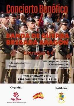 Con motivo de celebrarse el Patrón de Cáritas Castrense, San Martín de Tours, el pasado 11 de noviembre tuvo lugar un Concierto Solidario organizado por Cáritas Parroquial Castrense San Fernando – Aragón con la colaboración de la Brigada Aragón 1.
