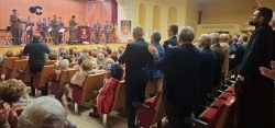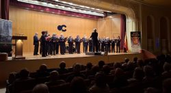 Como en anteriores ocasiones la Unidad de Música de la División San Marcial bajo la dirección del Capitán músico D. José Javier Bascoy Iglesias y el coro de la Real Hermandad de Veteranos de las Fuerzas Armadas y de la Guardia Civil con D. José María Alemán Elizondo a la cabeza, nos deleitaron con un entretenido programa en el que pudimos escuchar desde canciones populares españolas, mejicanas o neozelandesas hasta ritmos cubanos o rusos y cómo no, una selección de pasodobles y de piezas de nuestro querido género chico. La actuación culminó con el conocidísimo pasodoble “La Banderita” de la zarzuela Las Corsarias del Maestro Alonso que los espectadores entusiasmados corearon puestos en pie.