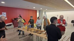 Muy satisfechos por ello y como forma sencilla de reconocimiento, varios miembros de la CPC de Burgos se trasladaron hasta la ubicación del Belén monumental, donde los miembros belenistas estaban realizando las tareas de desmontaje, para agradecer su trabajo y obsequiarles con un desayuno continental. Ocasión propicia también para conocerse mejor y comentar algunas curiosidades de esta magna empresa, como por ejemplo el dato sorprendente de los 38 viajes de camión que son necesarios para movilizar todo el material tanto al montaje como al desmontaje y las visitas que este año han superado las 20000.
