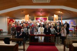 Se adjunta una fotografía de grupo, otra sobre la Eucaristía y por último una vista general del comedor.