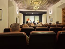 Asistieron 10 personas del colectivo de Cáritas Castrense, en una sala del Ateneo de Málaga, la cual se encontraba semivacía.