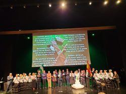 El acto fue muy emotivo, con actuaciones musicales del coro “Pan y Aceite” y algunos de los galardonados, como los cantaores D. Juan Peralta y Dña. Nuria Molina.