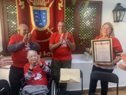 Durante el encuentro, y ya en el momento de los postres, el director de CPC de Tenerife, D. Jesús Castillo Culsán, hizo entrega al teniente general D. Julio Salom de un diploma como Voluntario de nuestra Cáritas, en reconocimiento a su cercanía y apoyo constante a la labor social desarrollada por la entidad.