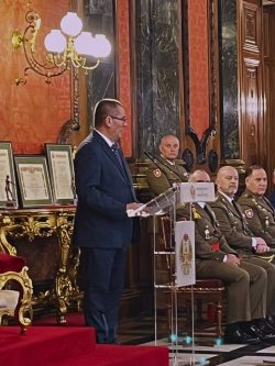 En su intervención, el General D. Prudencio Horche Moreno destacó la labor de Cáritas Castrense Parroquial San Fernando – Aragón, recordando que, desde su creación “hace poco más de seis años, ha apoyado al “personal y a las familias de las Fuerzas Armadas, Guardia Civil y Policía Nacional que atraviesan momentos difíciles o necesitan acompañamiento por motivos de soledad o enfermedad”.