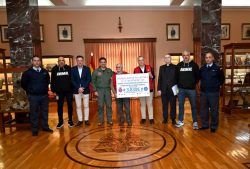 El Coronel Director de la Academia General del Aire, D. Luis Felipe González Asenjo, hizo entrega del cheque solidario al Presidente de Cáritas Parroquial Castrense San Javier, y a su Director.