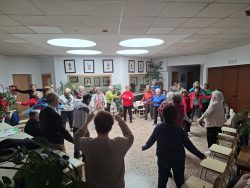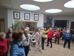 26 de febrero; sesión de gimnasia con la participación de 25 beneficiarios y cuatro voluntarios
