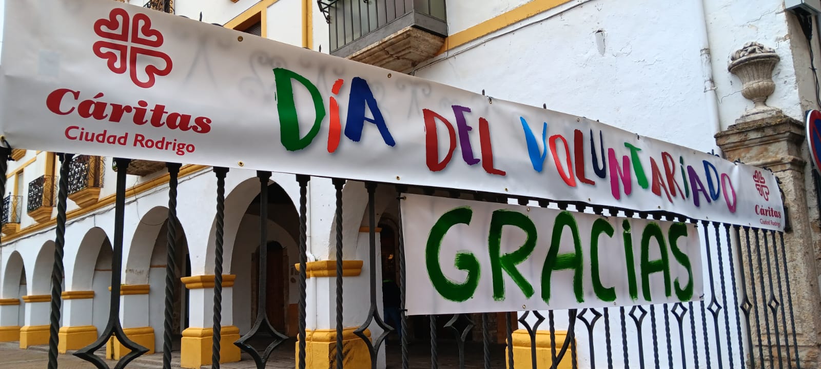 Como cada año, en el Día Internacional del Voluntariado, este 5 de diciembre Cáritas Diocesana Ciudad Rodrigo da las gracias a todas las personas voluntarias . Desde primera hora de la mañana, una pancarta colocada en la plaza del Buen Alcalde agradece la labor y la entrega de los voluntarios, cuyo apoyo y esfuerzo altruista resulta muy importante para llevar a cabo la labor de Cáritas en la diócesis de Ciudad Rodrigo.