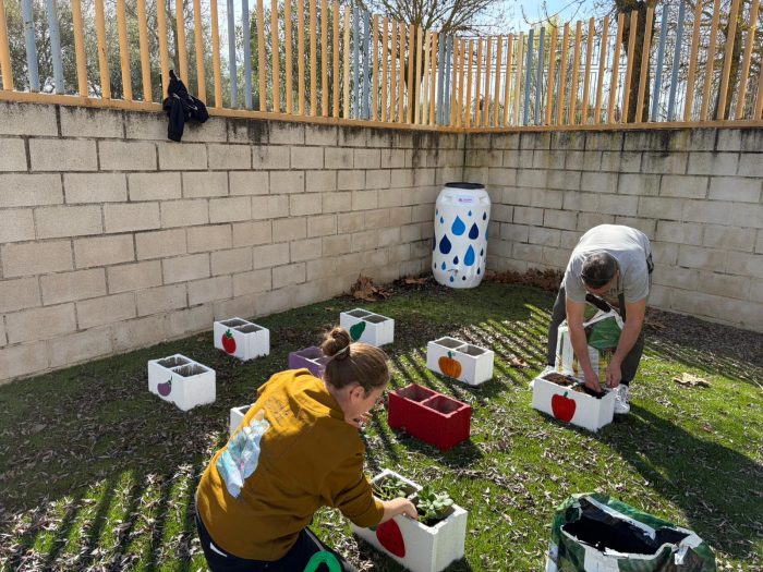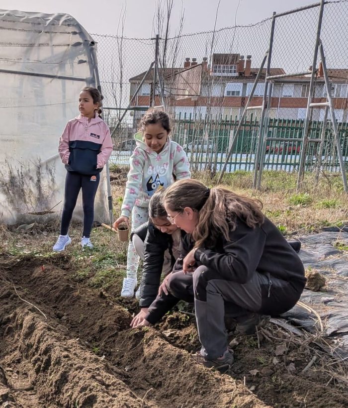 El pasado 6 de febrero participantes y técnicos estuvieron en el colegio de “El Puente” que cuenta con su propio huerto escolar. Hicieron un semillero con los niños y niñas de este centro. El 3 de marzo, volvieron a este mismo colegio para sembrar las semillas y poner el huerto en marcha. Ese mismo día, también estuvieron en el colegio “Miróbriga” con el objetivo de preparar el huerto escolar para iniciar el sembrado, algo que también realizaron el pasado viernes 13 de marzo en el huerto del colegio “San Francisco”. También, se ha apoyado al pequeño huerto adaptado de la Escuela Infantil “José Manuel Hidalgo”.
