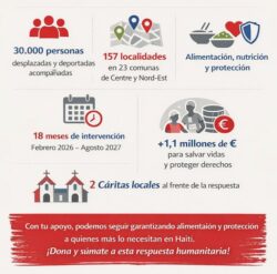 Respondemos a la crisis en Haití apoyando a personas desplazadas con alimentación, nutrición, protección y refuerzo de las Cáritas locales.