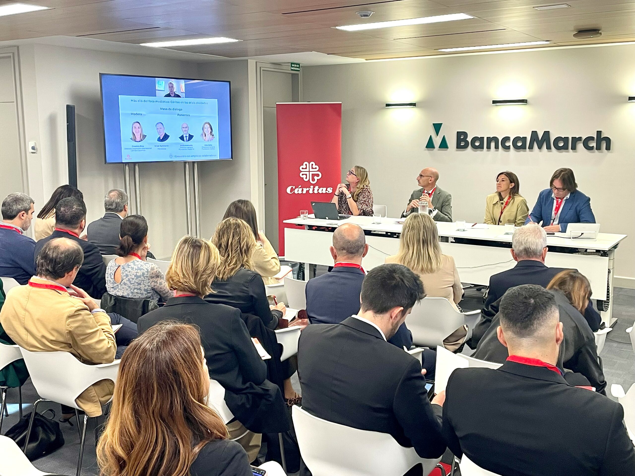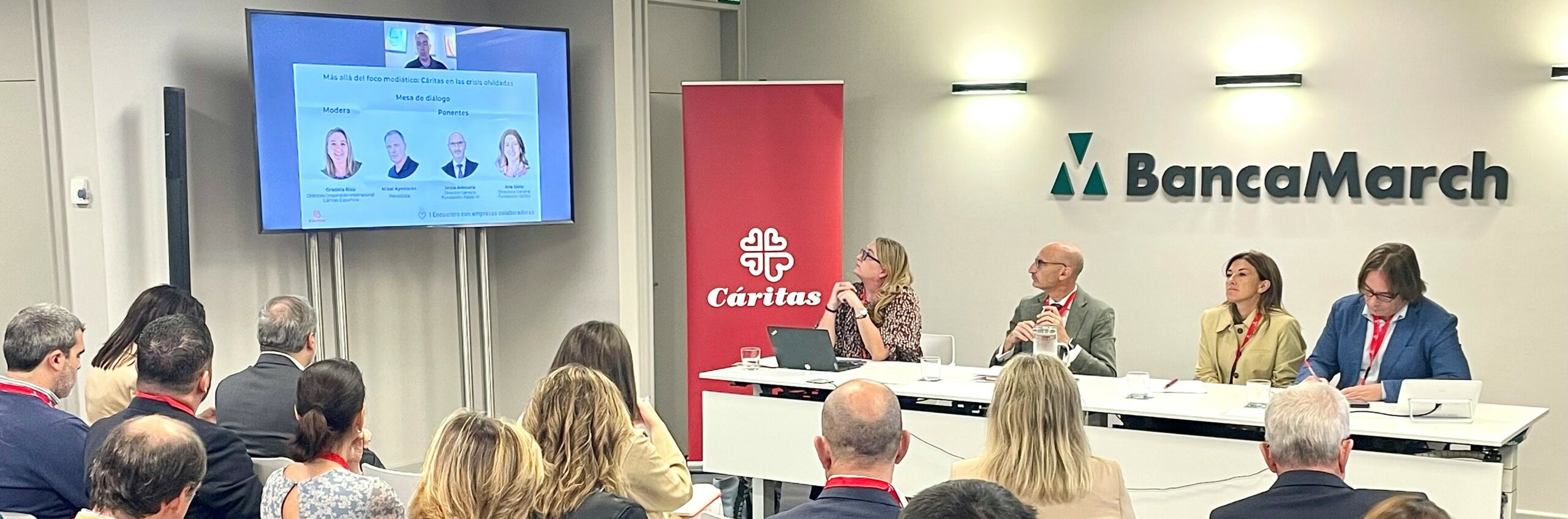 Con el objetivo de animar y fomentar las alianzas estratégicas en el ámbito de la cooperación al desarrollo, Cáritas ha celebrado este martes en la sede de Banca March en Madrid el I Encuentro con empresas colaboradoras. Las crisis olvidadas más allá del foco mediático. La jornada reunió a más de una treintena de compañías y estuvo presidida por el director territorial de la Unidad Grandes Empresas Central de Banca March, César López, y el presidente y secretaria general de Cáritas Española, Manuel Bretón y Natalia Peiro, respectivamente.