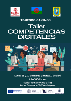 Tejiendo Caminos comienza este lunes 23 de marzo un taller de Competencias Digitales que se alargará durante tres sesiones y se impartirá en horario de tarde (16:30h) en la sede Mensajeros de la Paz (avda. Barcelona, 18, Guadalajara), con quien Cáritas trabaja en estrecha colaboración para favorecer la inclusión del colectivo de etnia gitana de Guadalajara. Las otras dos sesiones serán el lunes 30 de marzo y el martes 7 de abril.